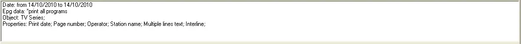 •Group by description: By selecting this option, EPG events that have been programmed more than once would appear as one event in the EPG report.