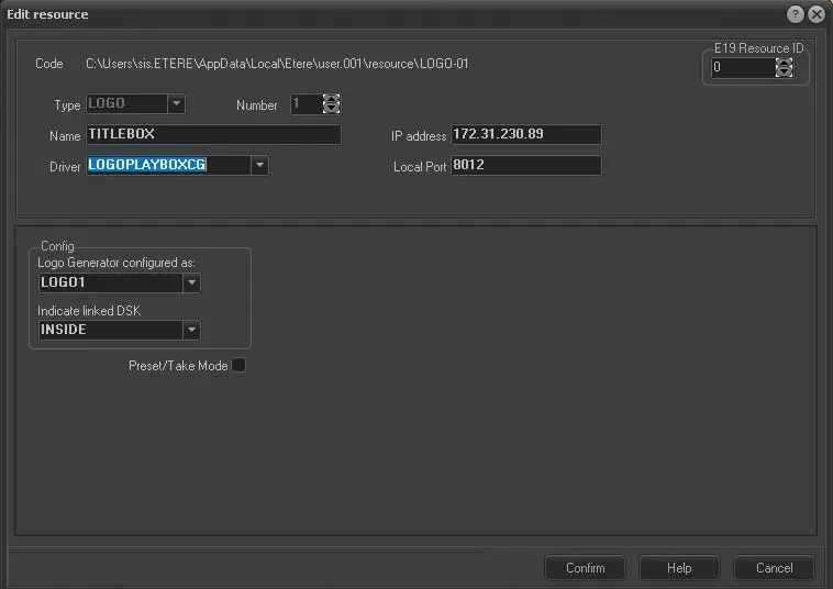 Etere controls the Playbox Logo resource either via TCP/IP or via UDP (using the 8012 port as default)