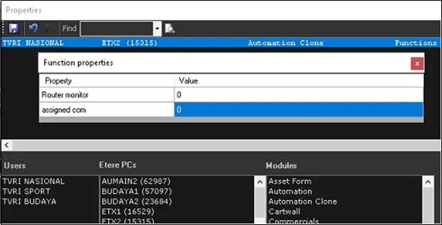 In the example below, the Master Control has been assigned to user "TVRI NASIONAL" to execute the "Automation Clone" module in workstation "ETX2 (15315)".