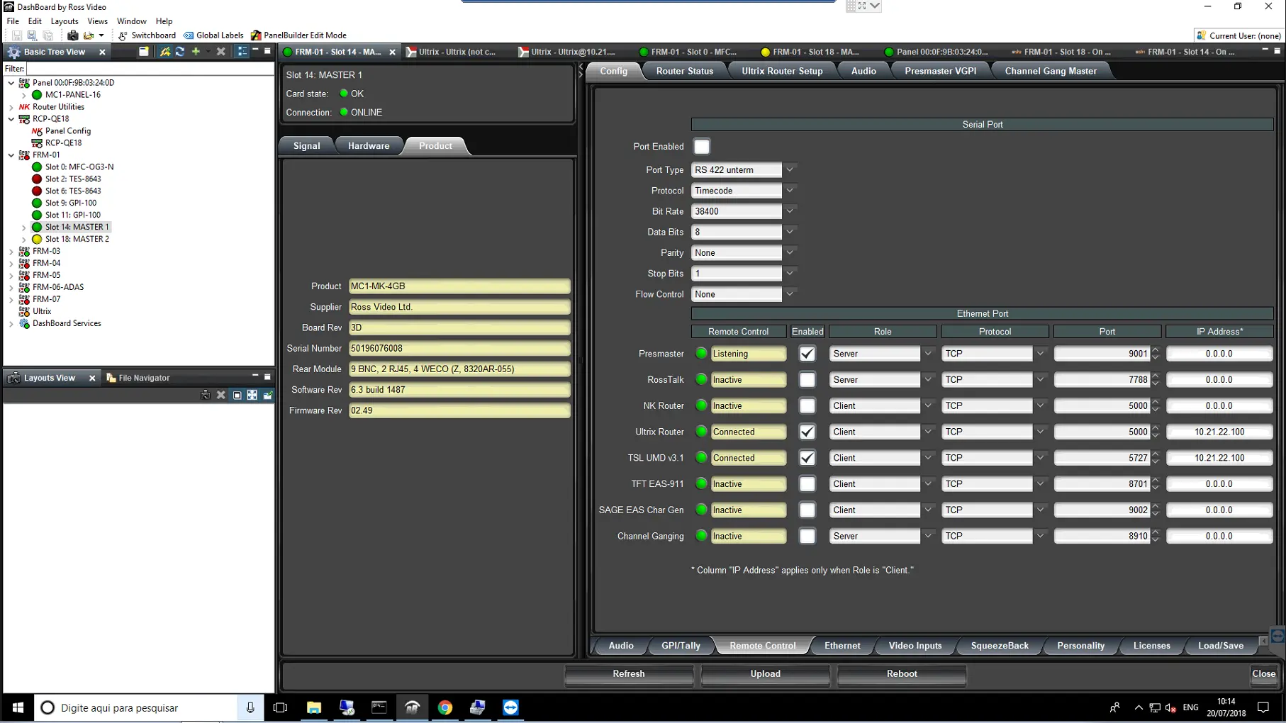 Below is an image of the configured Ross Master Control MC1 via TCP/IP.