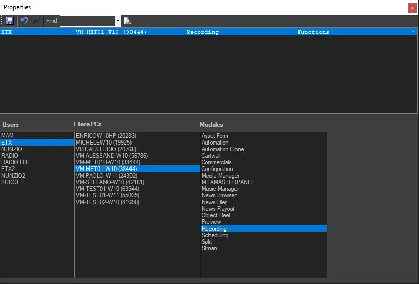 In the example in the image below, we allowed INGEST, which runs in VM-MET01-W10 PC, to manage the router switch for the recordings performed with station ETX.