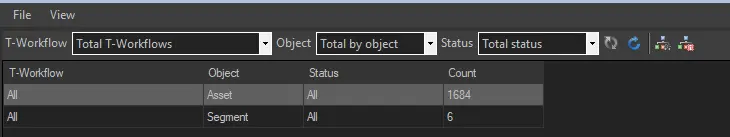 The top area (or master panel) shows the counted number of instances related to each T-workflow, making it possible to filter them by: