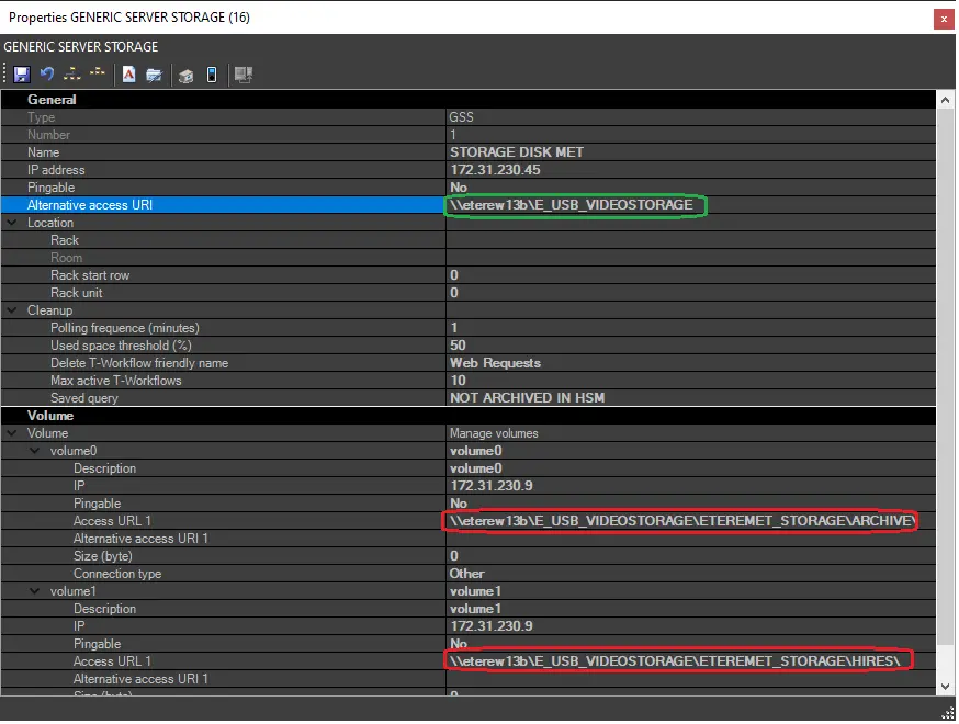 As illustrated below, if the Alternative access URI is set in the storage properties, the system calculates the storage space based on the Alternative access URI. It ignores the paths specified in the Access URL.