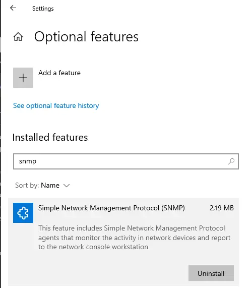 5. Press the [Ok] button to install the SNMP windows feature