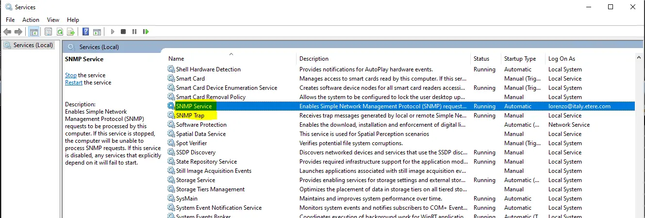 SNMP Trap - This service must be set to "manual" (the Etere SNMP Console service starts it). This service allows the monitoring console to receive and interpret SNMP traps.