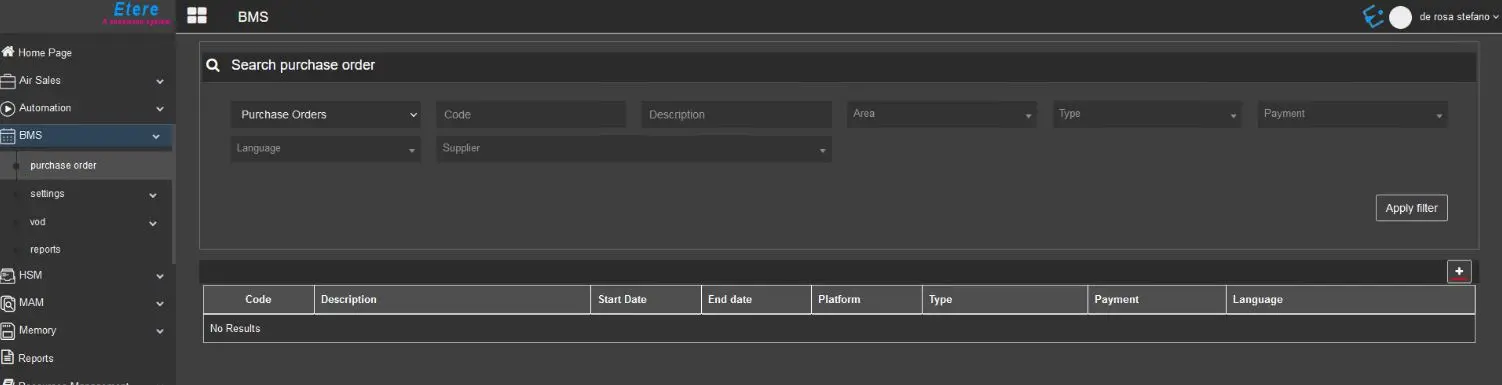 To create a new contract click on the plus button in Purchase order section and provide all the requested information in the landing page.