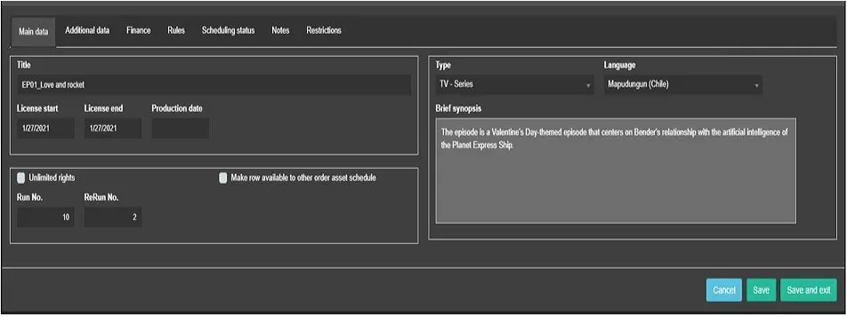 Make row available to another asset schedule: In some cases, an asset can be present in multiple Orders. If enabled, this parameter provides the Order line to Program Scheduler and Seasons Scheduler when BMS’s rights are unavailable in the scheduled used Order;