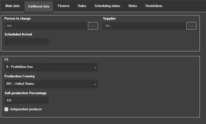 - If the asset is co-produced, the percentage is set between 0% and 100%.
