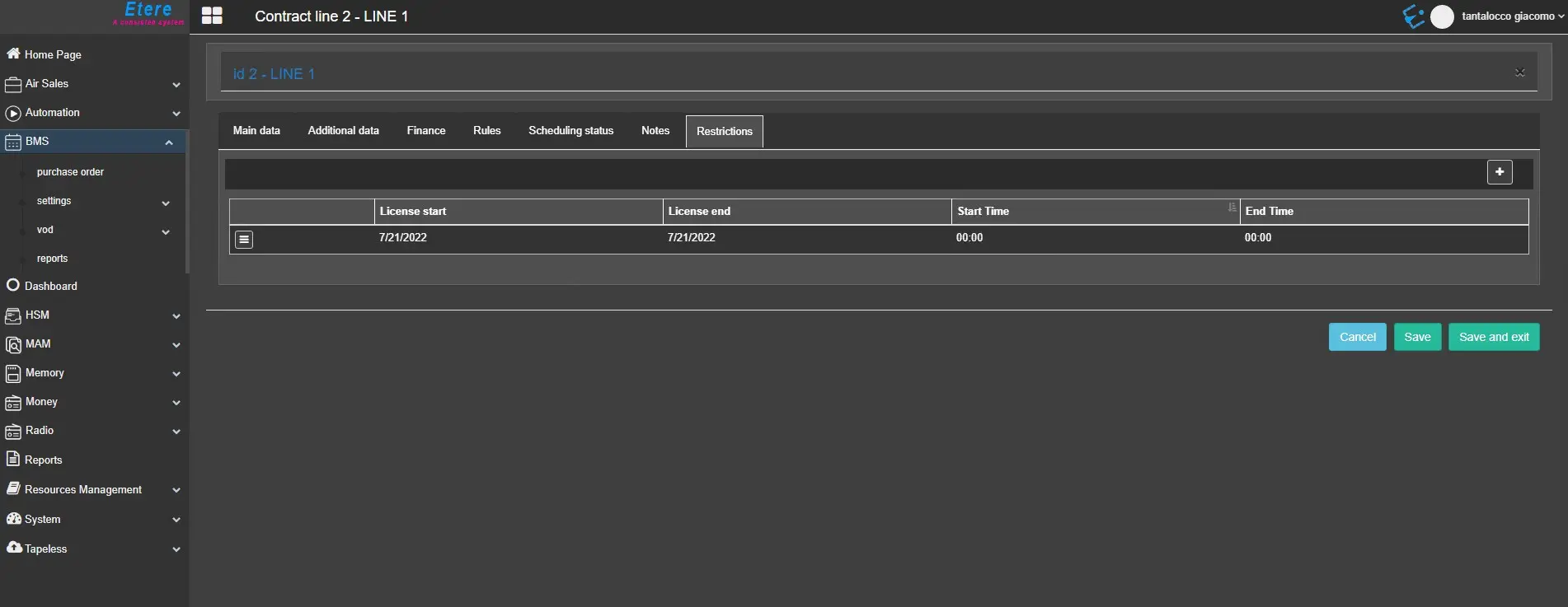 The Restrictions tab allows you to define one or more restrictions within date ranges for which purchased content is licensed for use (e.g. transmitted) and the exact time slot for each restriction period.