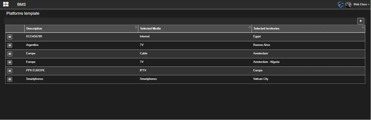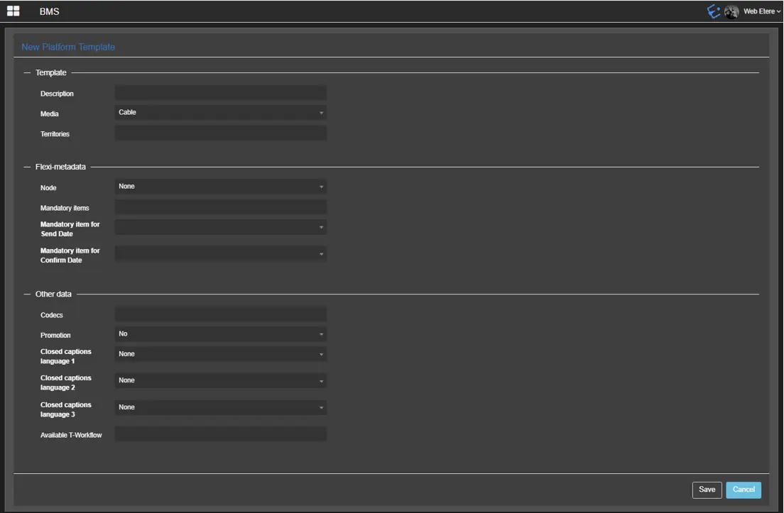 The Platform Template section specifies the media platform on which the content would be delivered and includes the territories where it should be provided.