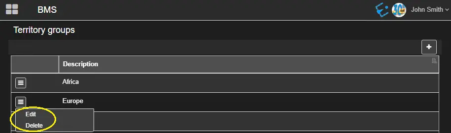 In the Territory Groups section, you can create territory groups (e.g. Asia, Europe, Africa, etc.) to be used when defining rights diffusion.