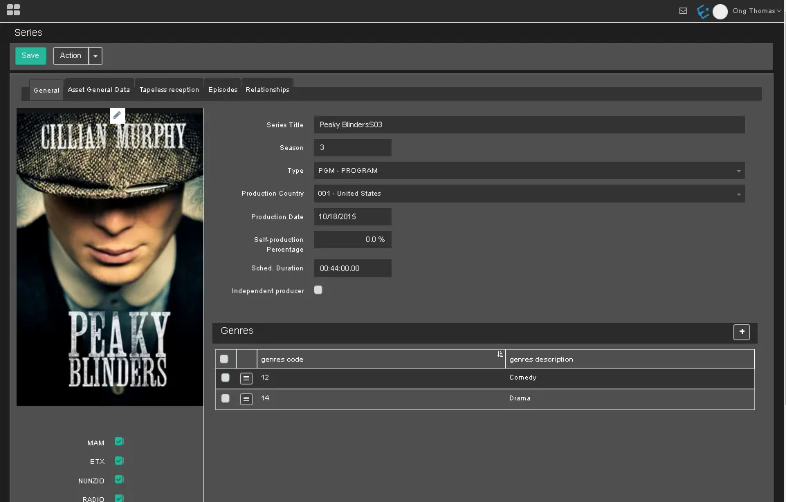 The VOD Delivery Status displays T-workflow information to trigger the seasons' events, titles, and the start and end dates when the seasons would be broadcast.