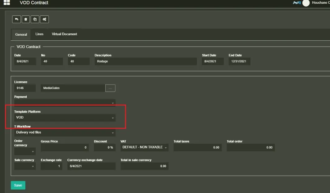 Delivery of media to the VOD platform “Vianeos.” The workflow must be triggered from the VOD contract (so the VOD workflow must be configured for the VOD template linked to VOD contracts).