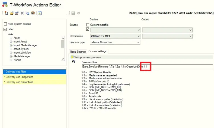 The specific action “Delivery of VOD files” is created automatically by System Maintenance and has only two parameters to be managed in the “WF Action” section: