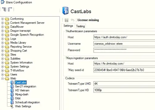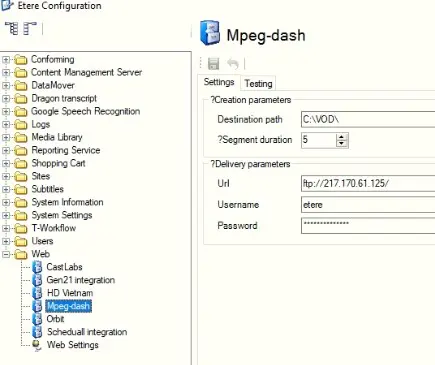 From Etere Configurations > Configuration Editor > Web, it is possible to set parameters for: