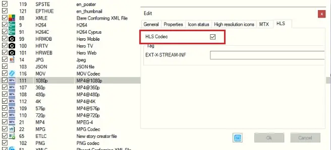 Then, the action starts a batch that creates a .mpd (mpeg-dash) file based on codecs linked to the asset with the property “HLS.”