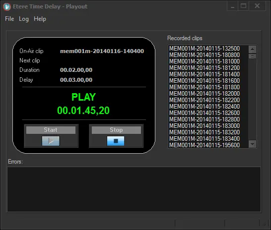 The "Time Delay - Playout" module allows playing back (with a configured delay) the clips previously captured by the Ingest module. The main interface is following described: