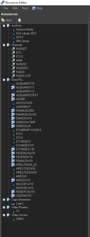 The resource will be automatically detected and will appear in the Etere Resources List, under the category “Etere PCs”.