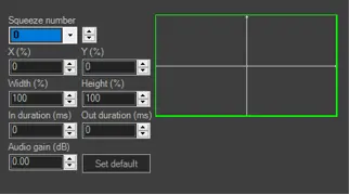 Squeeze number 1, 2, 3, 4 = squeeze to any four corner of the frame, with size equal to one quarter of the frame (the four quarters will be highlighted according to the template selected)