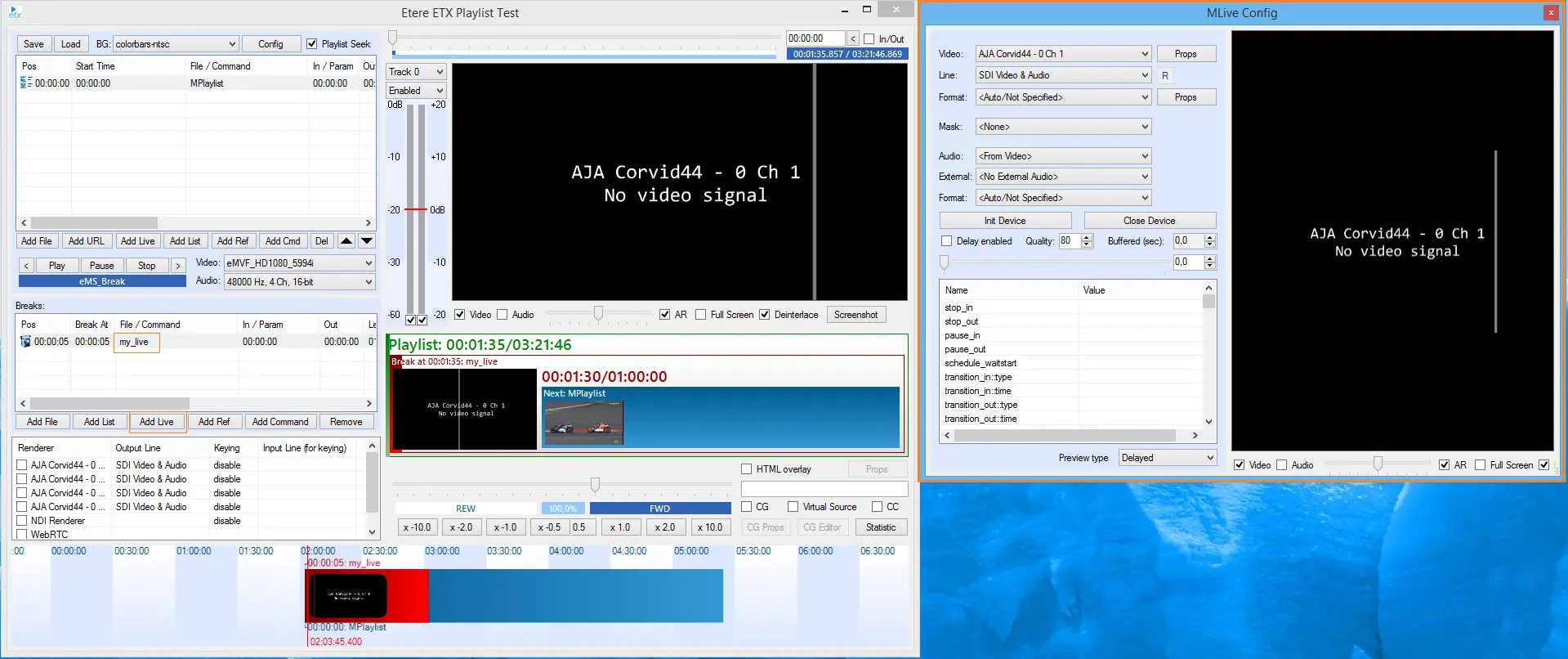 The Add Live button cover the same behavior as Add File and Add List do. Basically it allows us to insert any live signal, either SDI or NDI as Breaks within our Etere Toolbox Player Playlist.