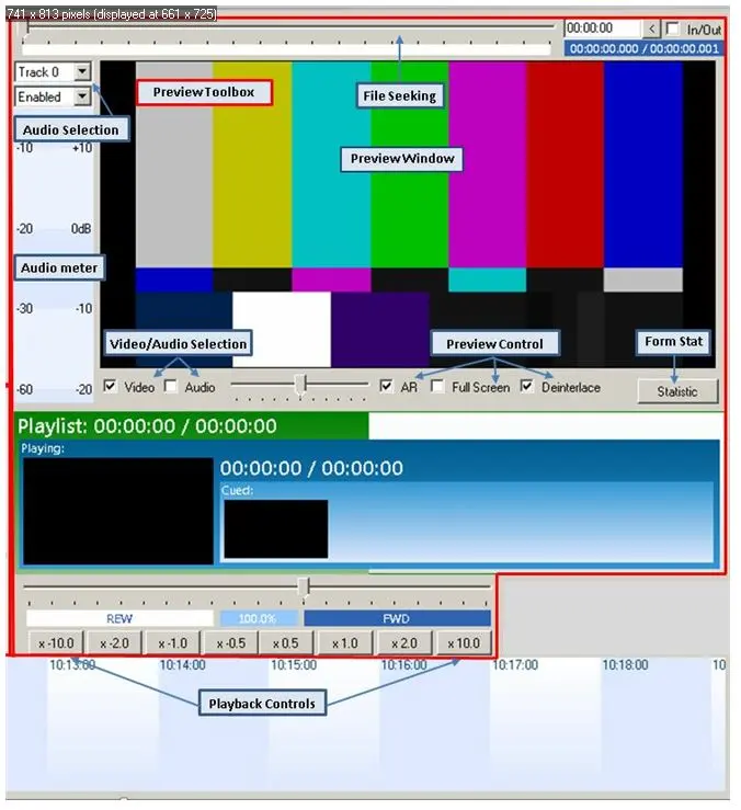 Open Etere ETX Toolbox Player; the preview window is on the right panel of the application.