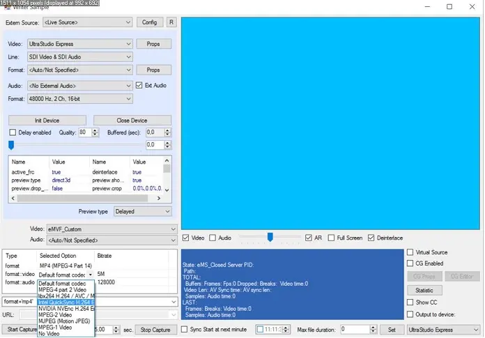 Testing H264 Encoding To test the H264 Encoder, you should use a supported processor and graphics card. For example, to use Intel Quick Sync, check that an Intel-based processor supports Intel QuickSync technology and Intel HD Graphics as the default graphics card on your machine. Next, open the ETERE Toolbox Writer application. Select, for example, MP4 as encoding format and open a list of available video codecs. Select an H264-supported encoder for, e.g., Intel QuickSync encoding, and start capturing your video onto the file. Intel QuickSync