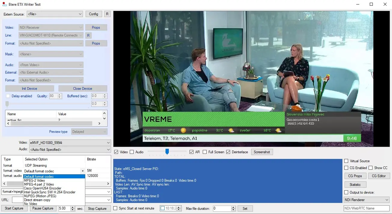 Once the codec is configured, we can use the H.265 (HEVC) Encoder in the Etere Ecosystem.