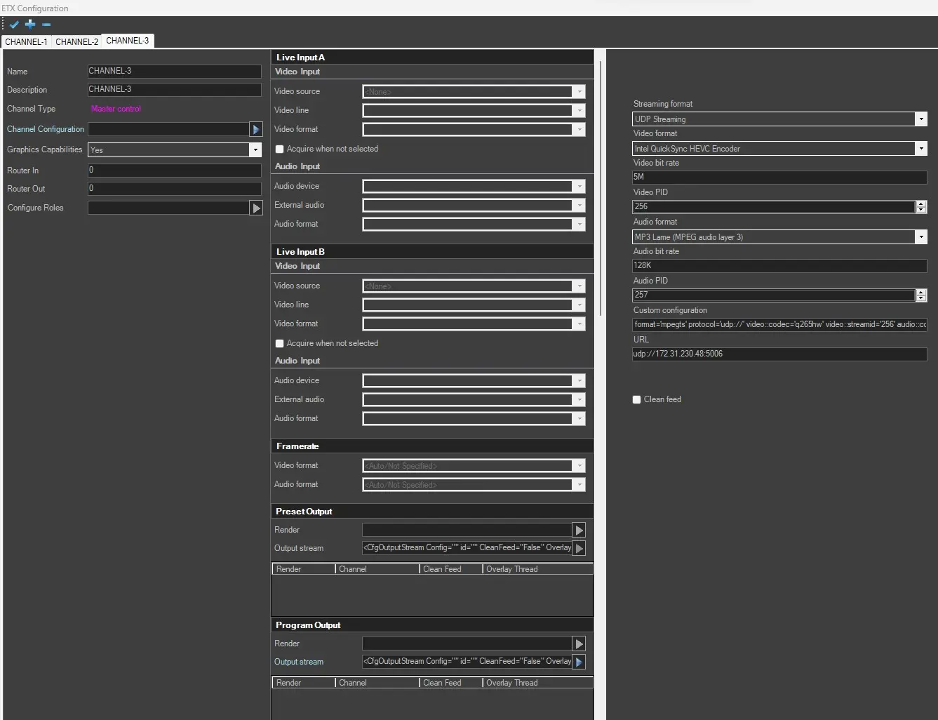 To start using HEVC Encoders as Automation Stream Video Format, we need to edit the ETX channel configuration.