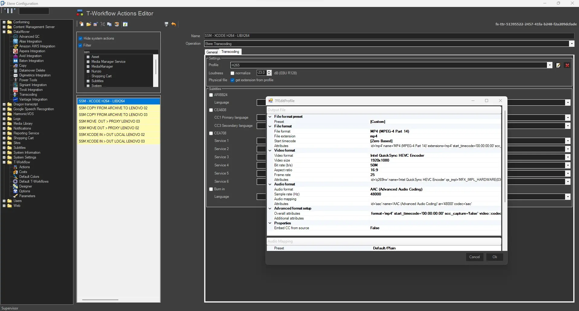 Etere Configuration > Configuration Editor > T-Workflow > Actions