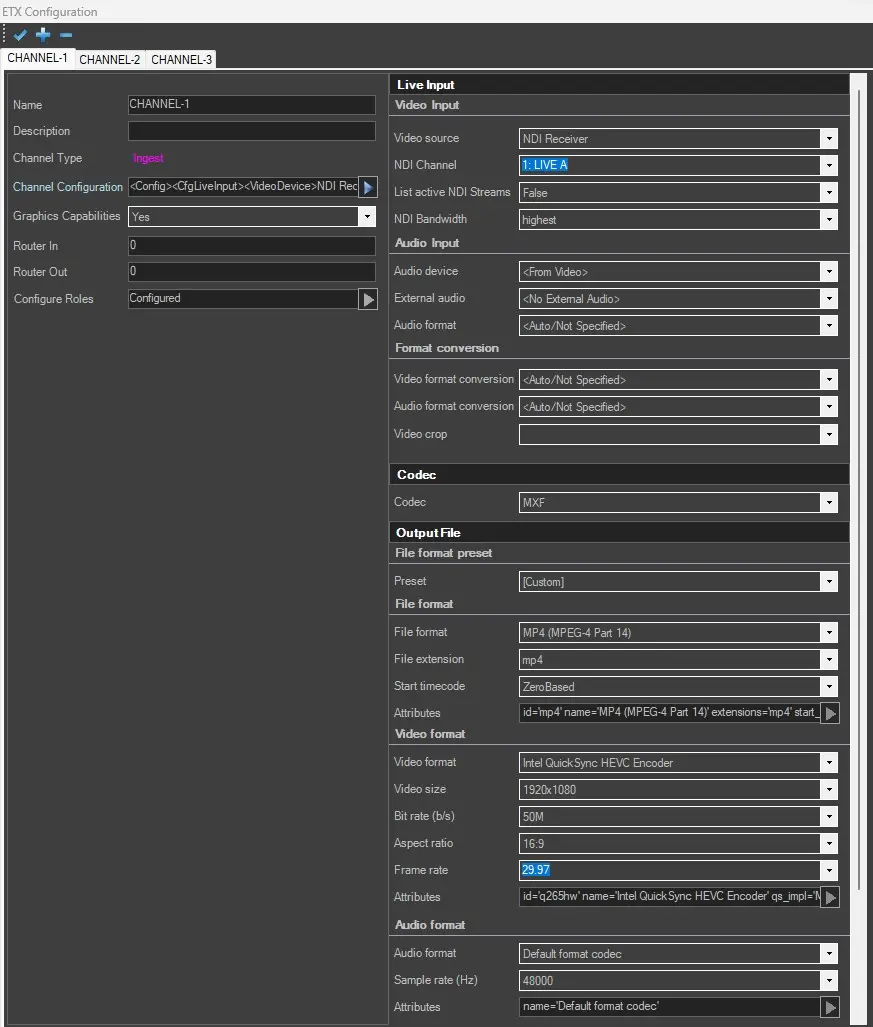 To start using the N265 Encoder in Etere Ingest, we need first to configure the ingest channels in the: