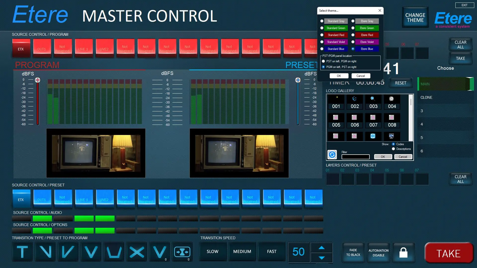 It is also possible to choose program and preset windows position: by default, it has PGM on the left and PST on the right.