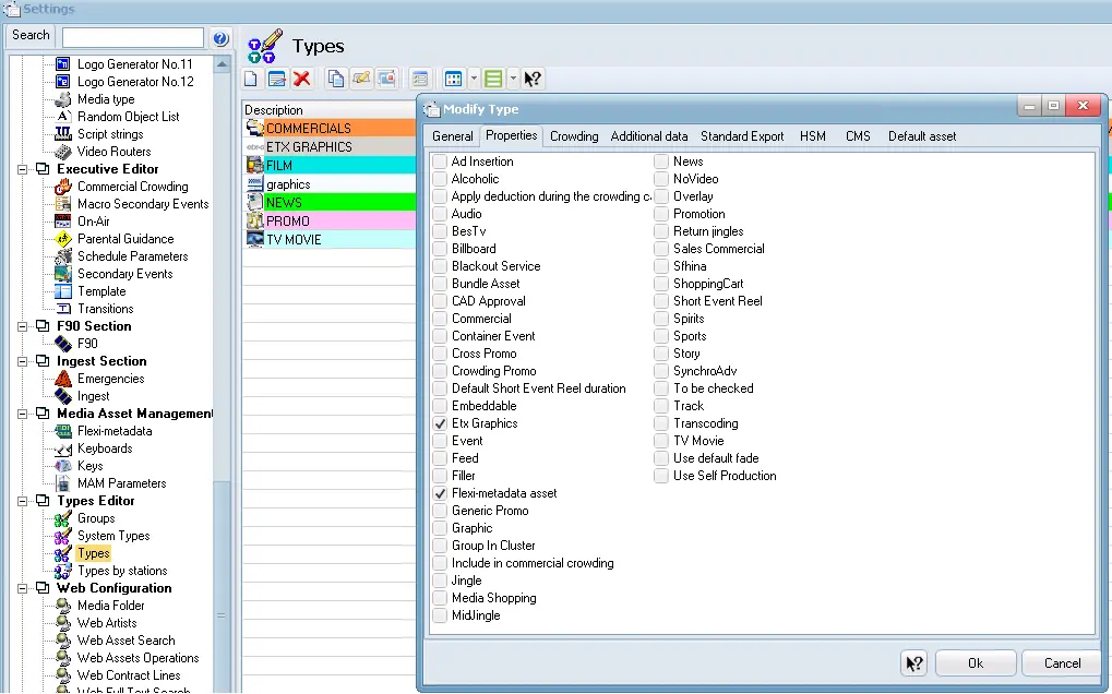 Next, navigate to Etere Configuration > Settings > Type Editor > Types, right-click the ETX-G resource and select Edit to modify the resource type. In the Type Properties, the ETX Graphic check box must be enabled for the resource to manage graphic objects.