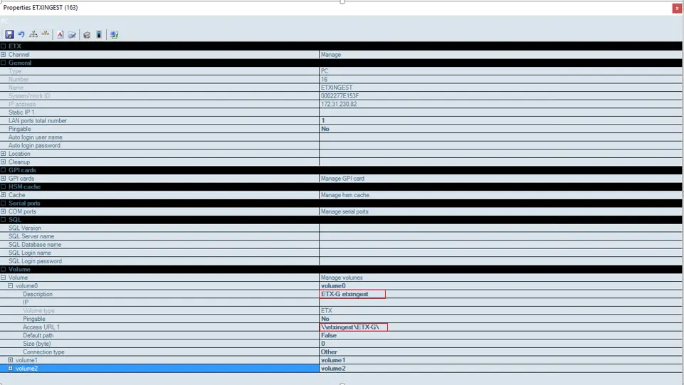 Launch Etere Resources Editor, edit ETX-G properties and input the network path in the local PC