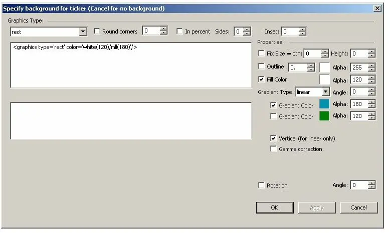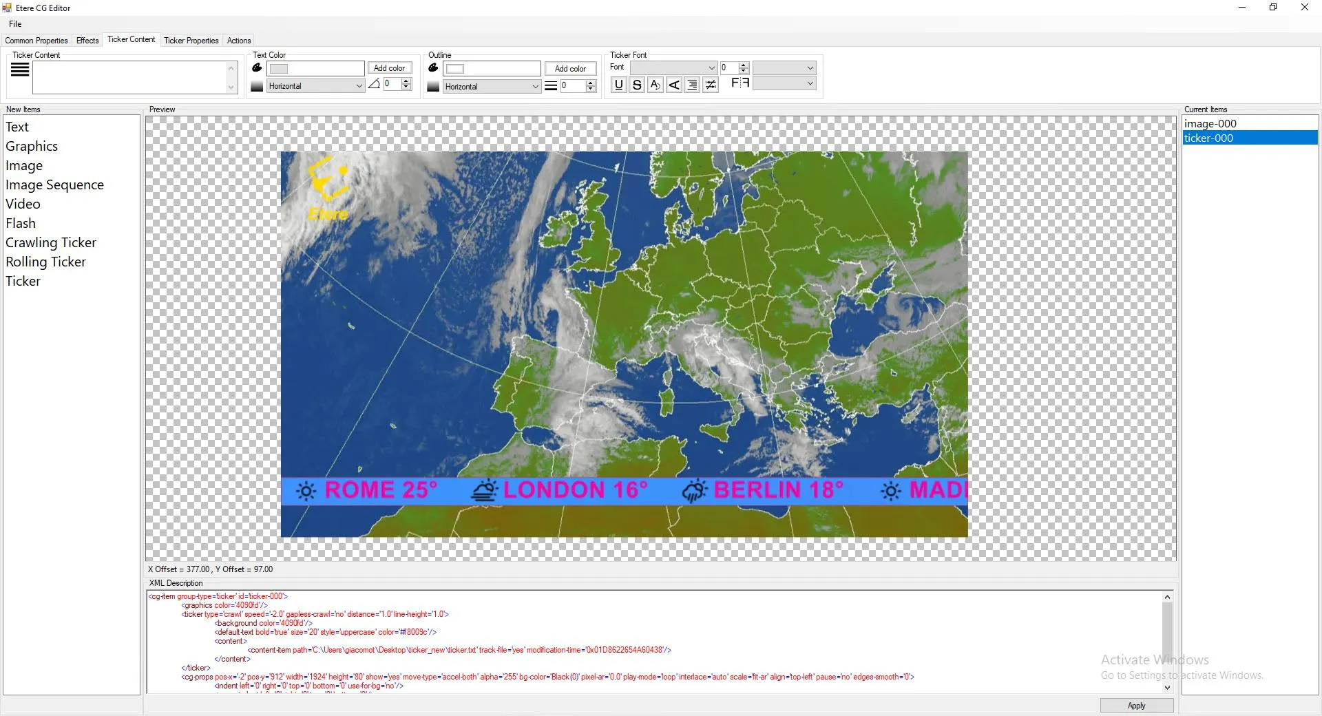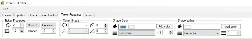 Edit and specify the ticker background (optional); you can edit the ticker background and properties later in ETX CG Editor.