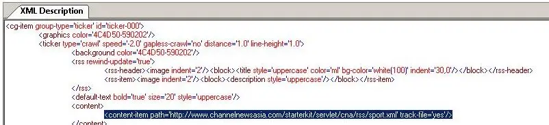 You can use the RSS feed for the ticker content. To do so, you need to copy the URL address as a path to 'new content' in 'ticker properties':