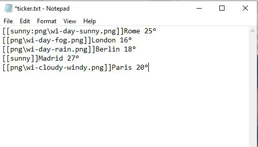 Create content with 'notepad' application for the ticker; you can edit and update the content.