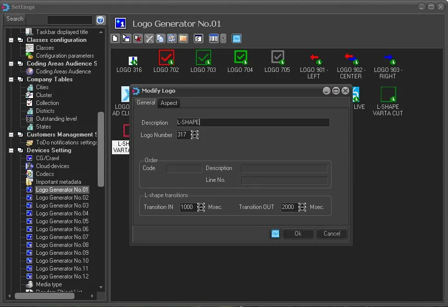 It is also possible to edit the transition timing of the squeeze effect included in the L-Shape graphics, modifying the Logo configured in Etere Logo Generator section in Etere Configuration > Settings.