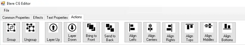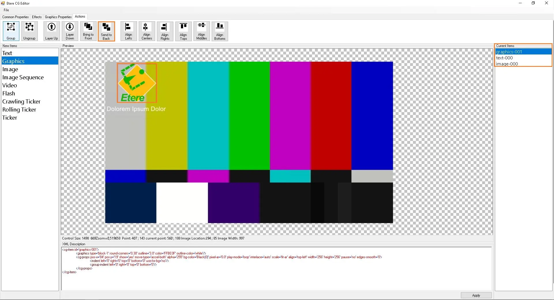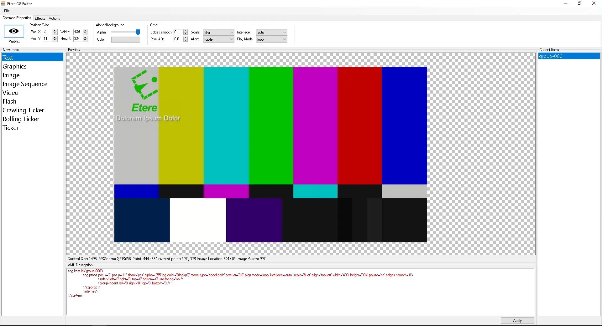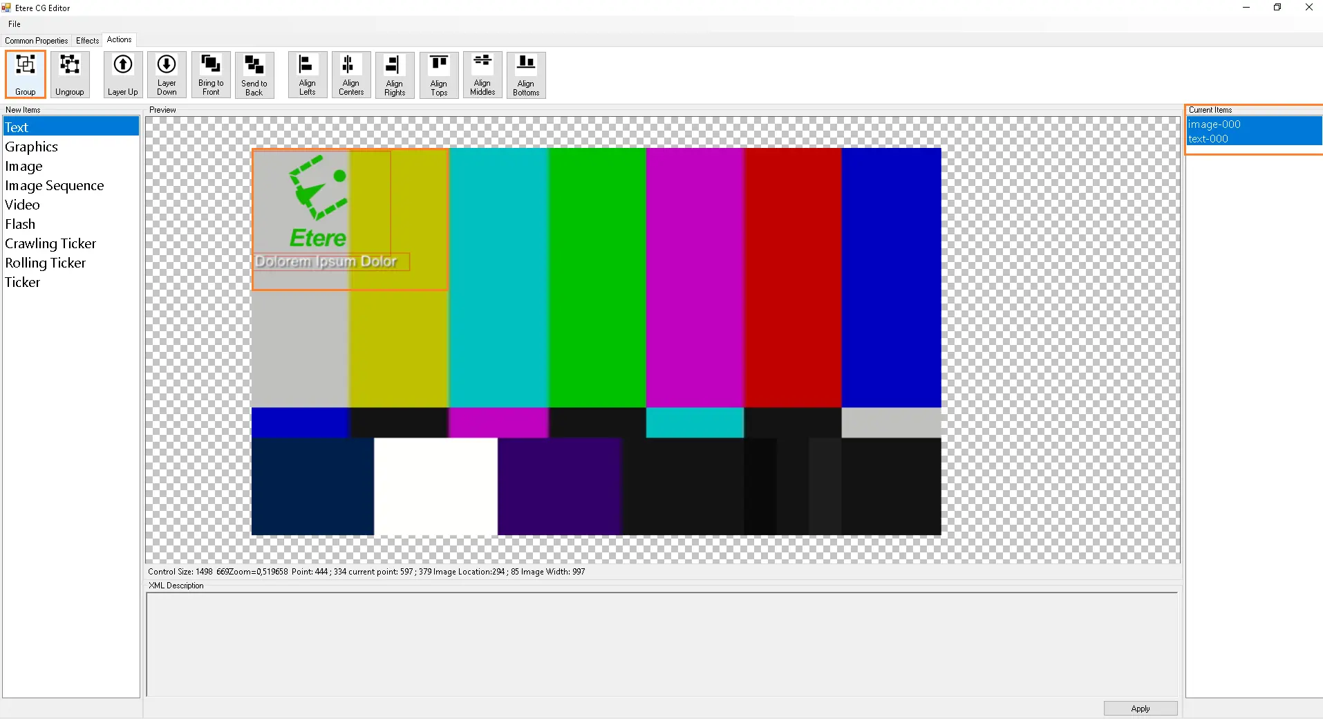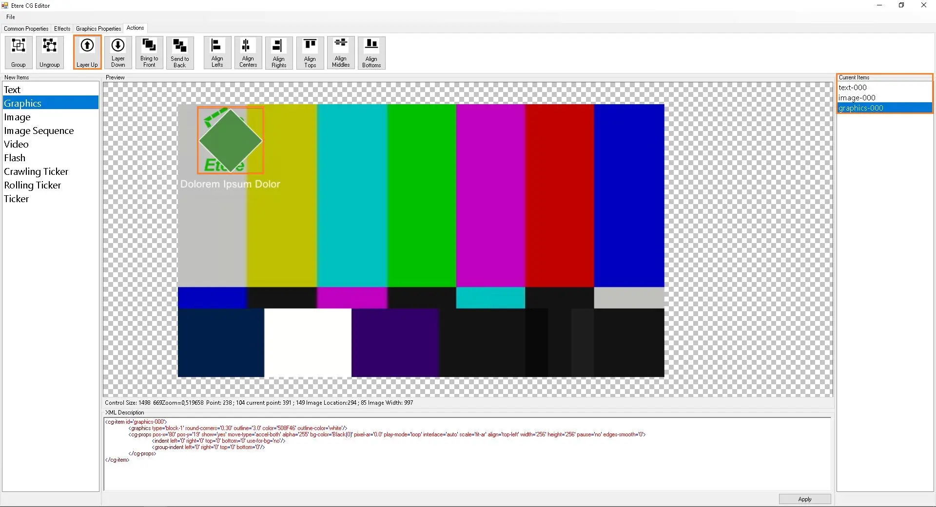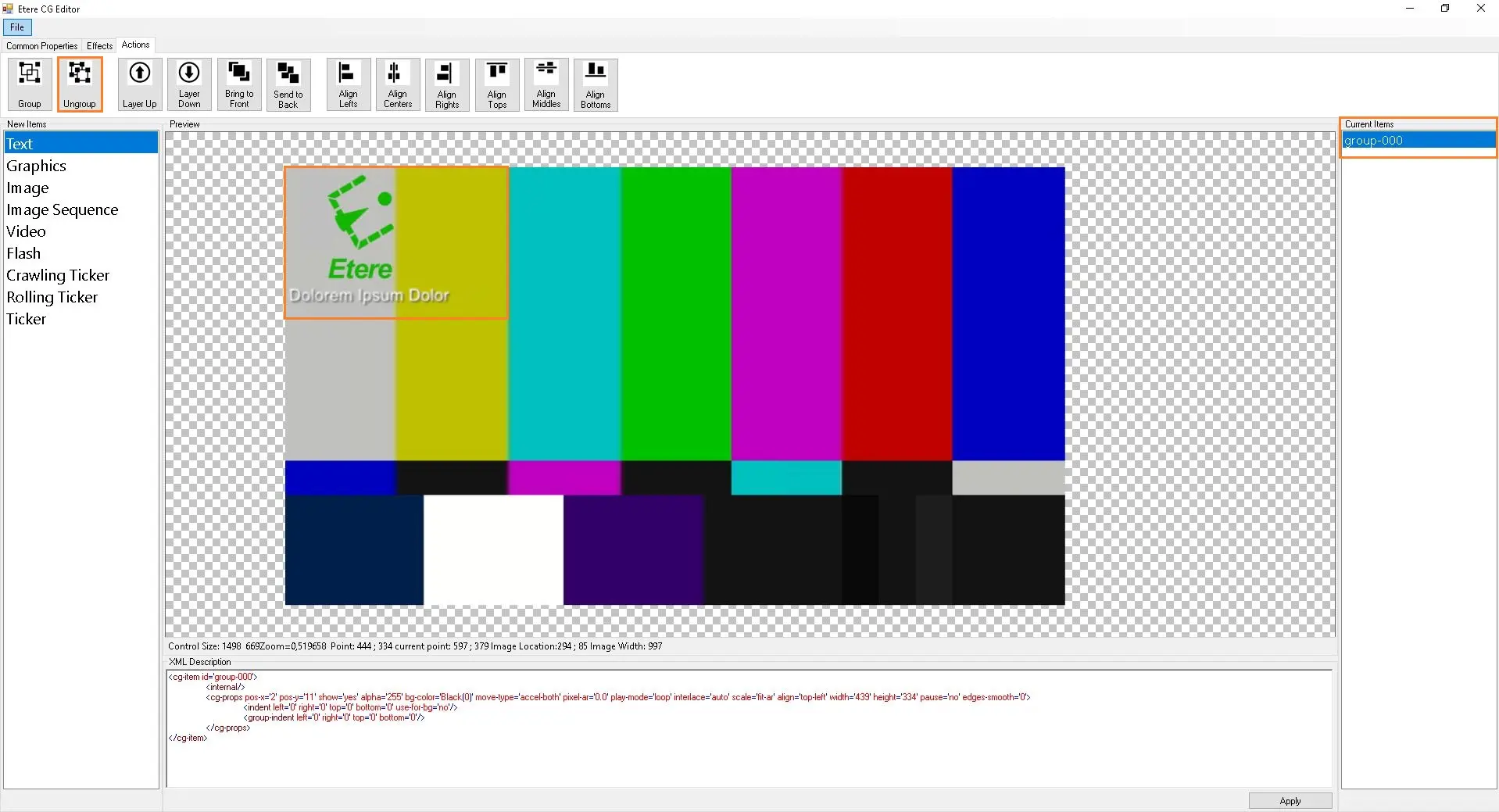 Following all the related Tools and Properties available on the Etere CG Editor Toolbar: