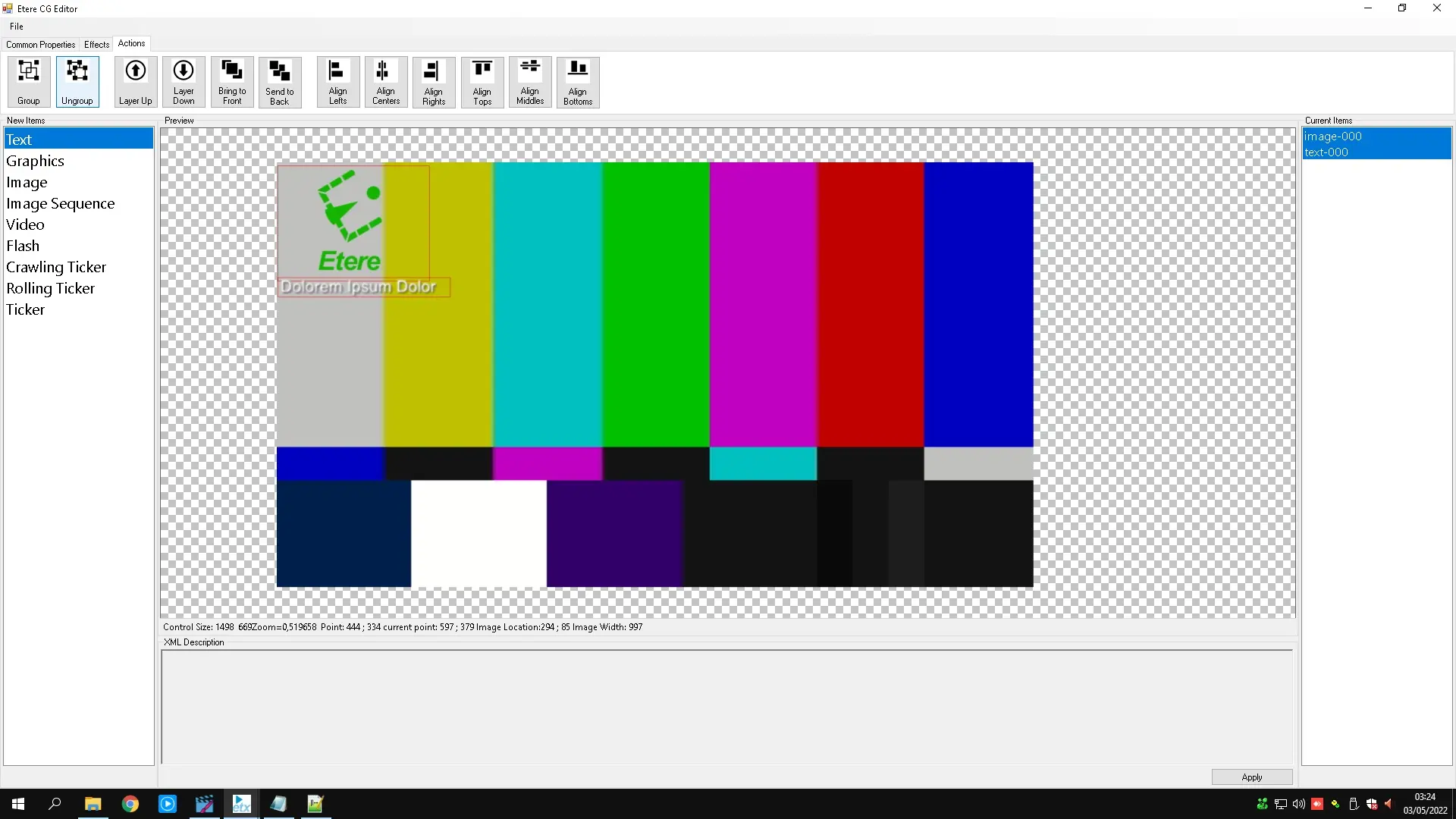 Etere ETX Graphic Editor provides many Text tools allowing the Graphic Designer to create and edit content.