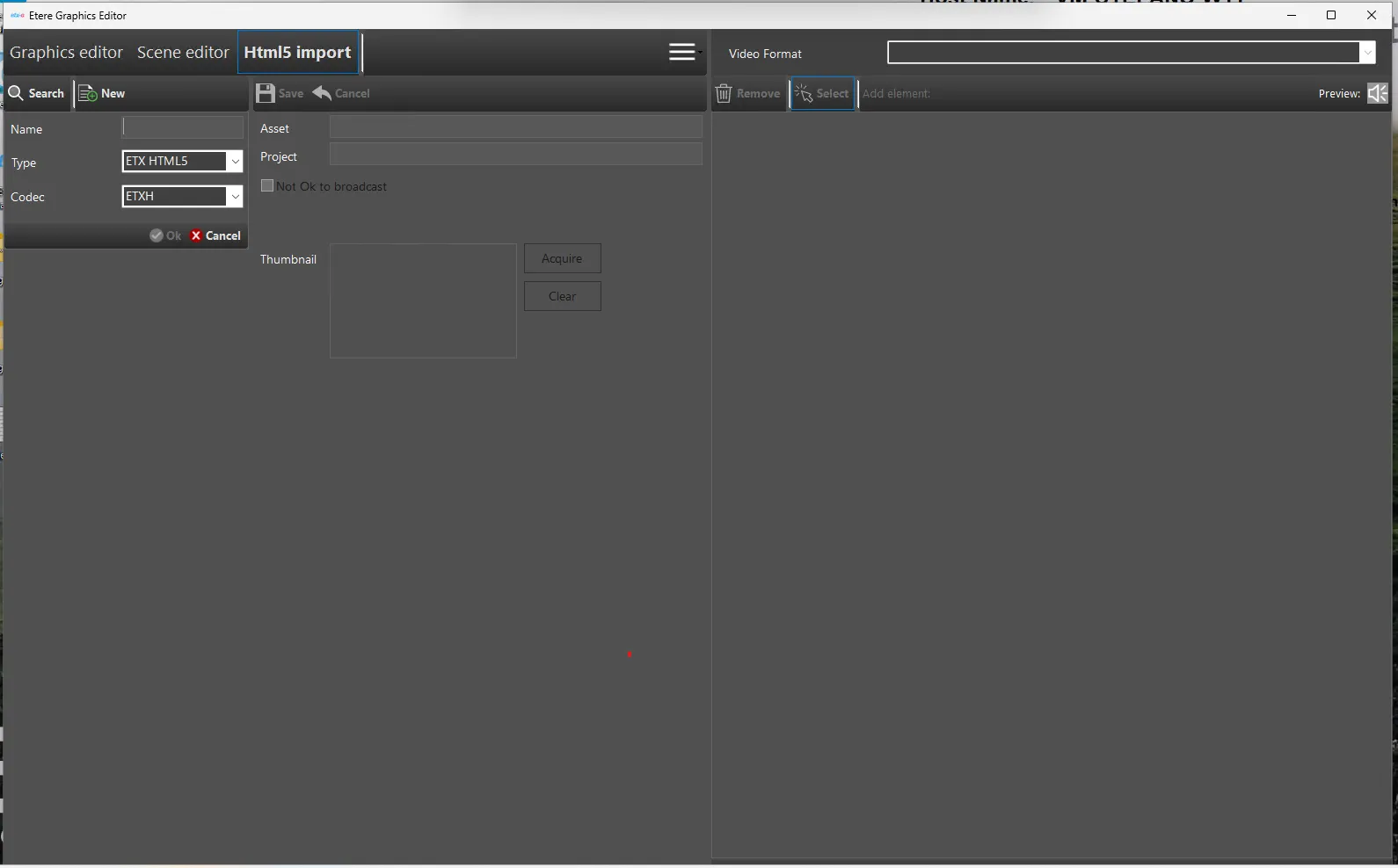 In HTML5 import Editor, you can create new image assets or modify existing assets in a similar way as described in Graphics Editor. Before creation, an asset type property, "ETXH", must be defined in the "Type" properties.