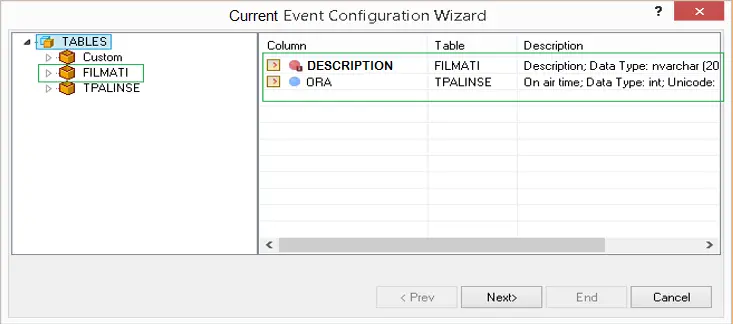 In Database Tables, select the database field to be fetched and listed in the Current Event ticker. In the example above, database fields “Description” for asset title/description and “ORA” field for asset scheduled time has been selected.