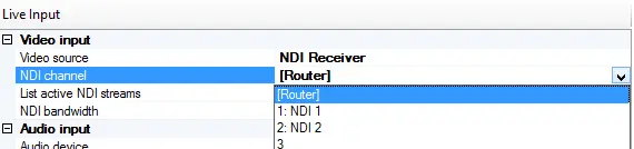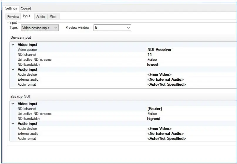 If the network stream input source is an NDI stream, all the Audio Input parameters would be automatically compiled to the default values.