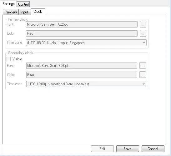 In the Type field, if you select the “Clock” option from the list, a “Clock” tab will be added to the display.