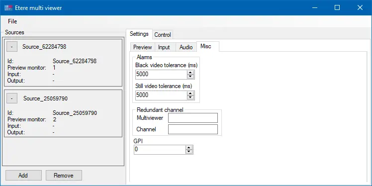 Double-click the new input source – Preview Monitor: 2, and start the configuration.
