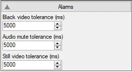 - Audio mute tolerance: in case audio is silent for a time period over that defined, the audio mute alarm is activated on the Multiviewer monitor.