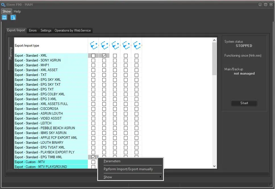 Remember to set the same parameters in the Etere Scheduling > Import/Export module and apply the changes.