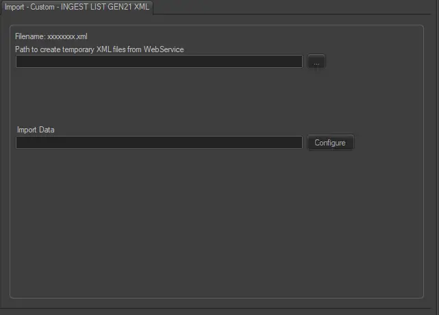 The INGEST LIST GEN21 XML import allows to establish a connection with the Gen21 web service to retrieve all information related to the scheduled events which ingest is pending.