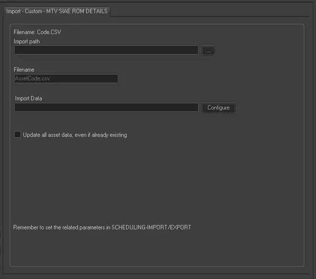 The F90 Import Custom MTV SIAE ROM Details allows to import a CSV file containing the SIAE ROM details data of an Etere asset.