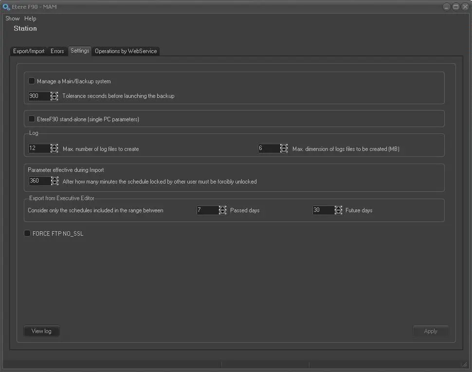 Etere F90 standalone (single PC parameters) - If enabled, all parameters, including selected operations, would be saved only for the current Etere PC; otherwise (if disabled), they would be common for all Etere PCs.