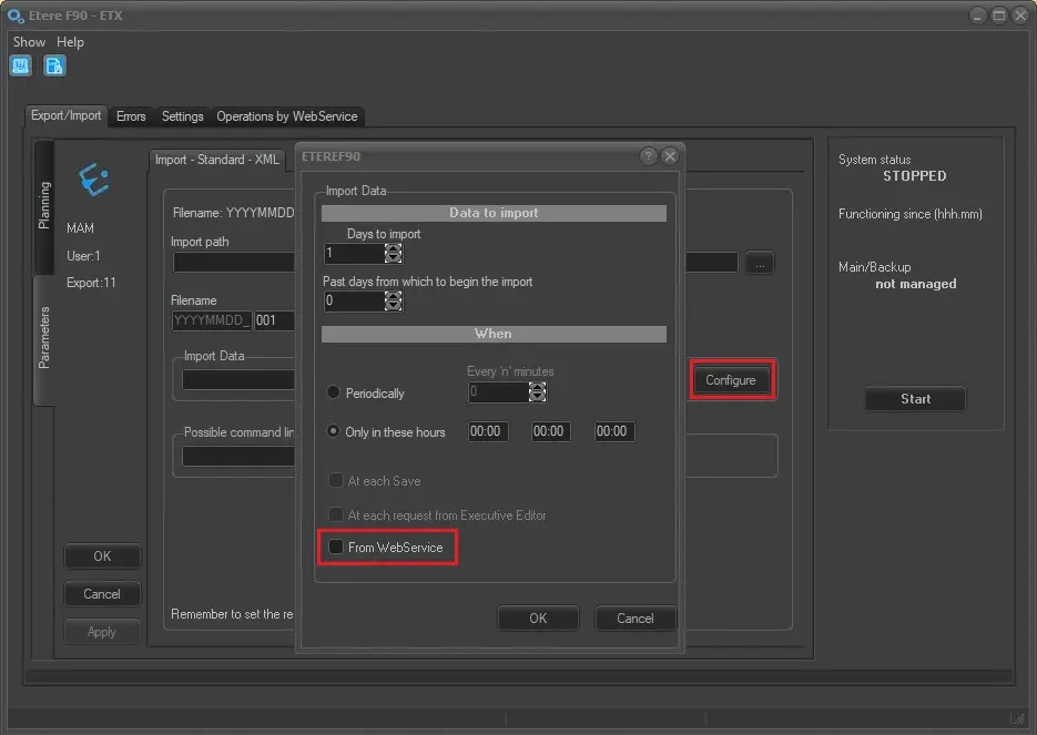 The "Operations by WebService" tab shows the imports generated by the Web Services. All requests can be sorted by date range, user name, or requests to be processed.